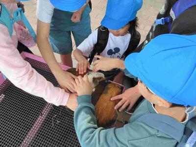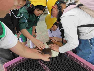 慣れない環境で気分が高まっているのにも関わらず、園内のルールを守り楽しく活動することができました。また、なかよしコーナーでは、テンジクネズミに優しい表情で優しく触れ合うことができました。
